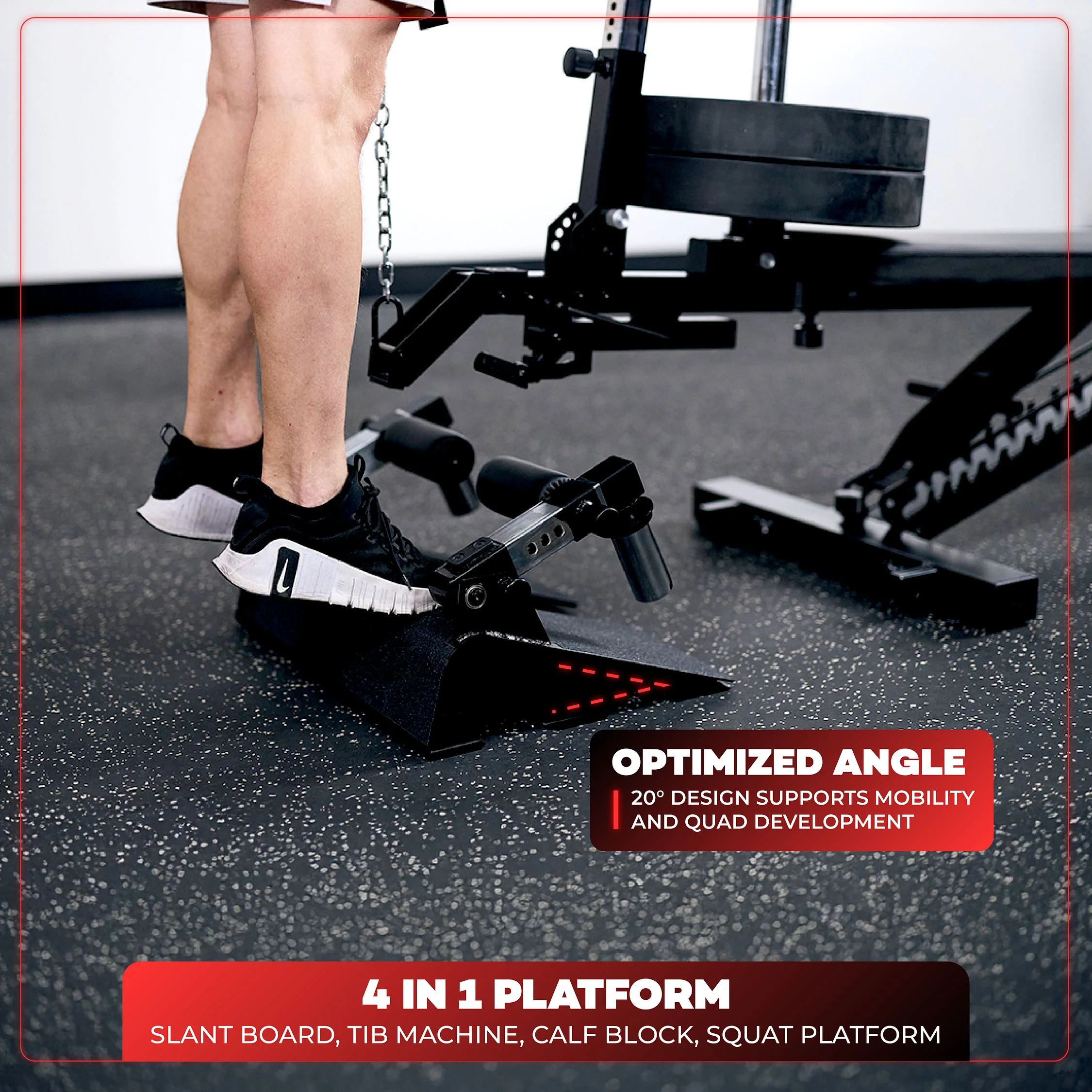 4-in-1 Versatility: Functions as a Slant Board, Tib Machine, Calf Raise Block, and Belt Squat Platform